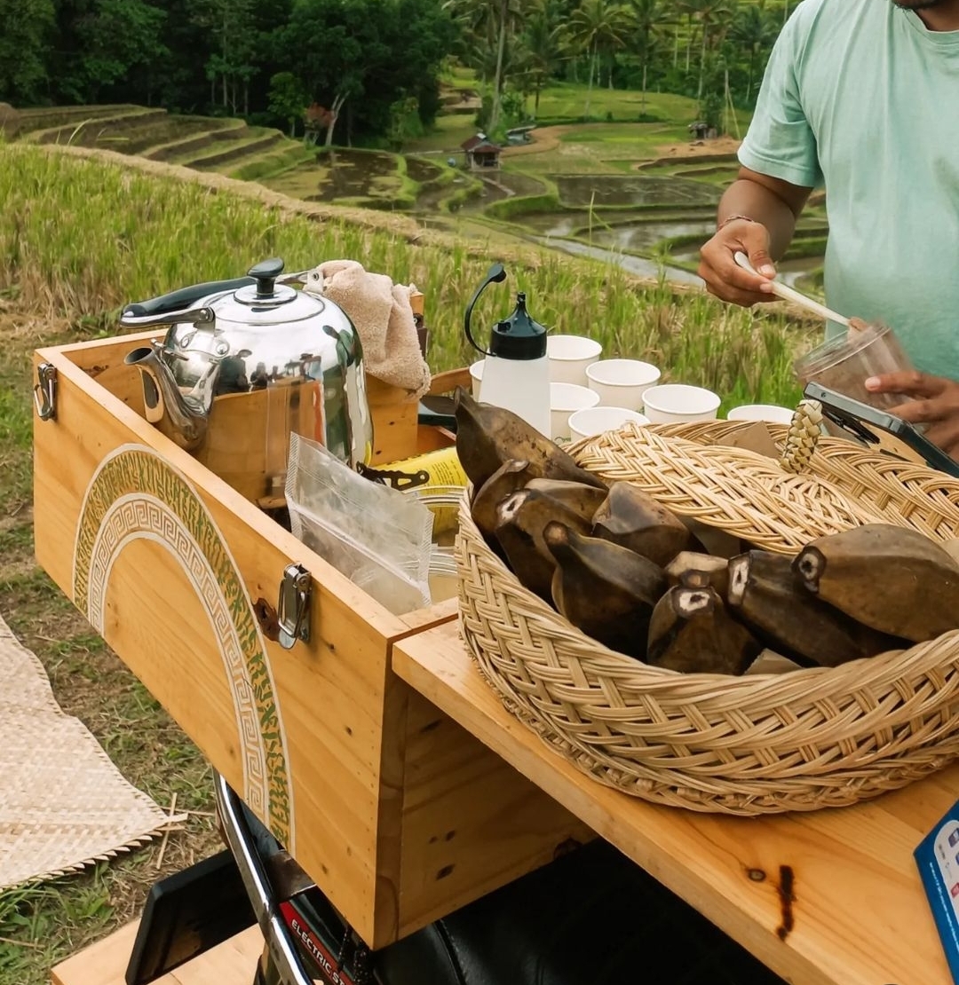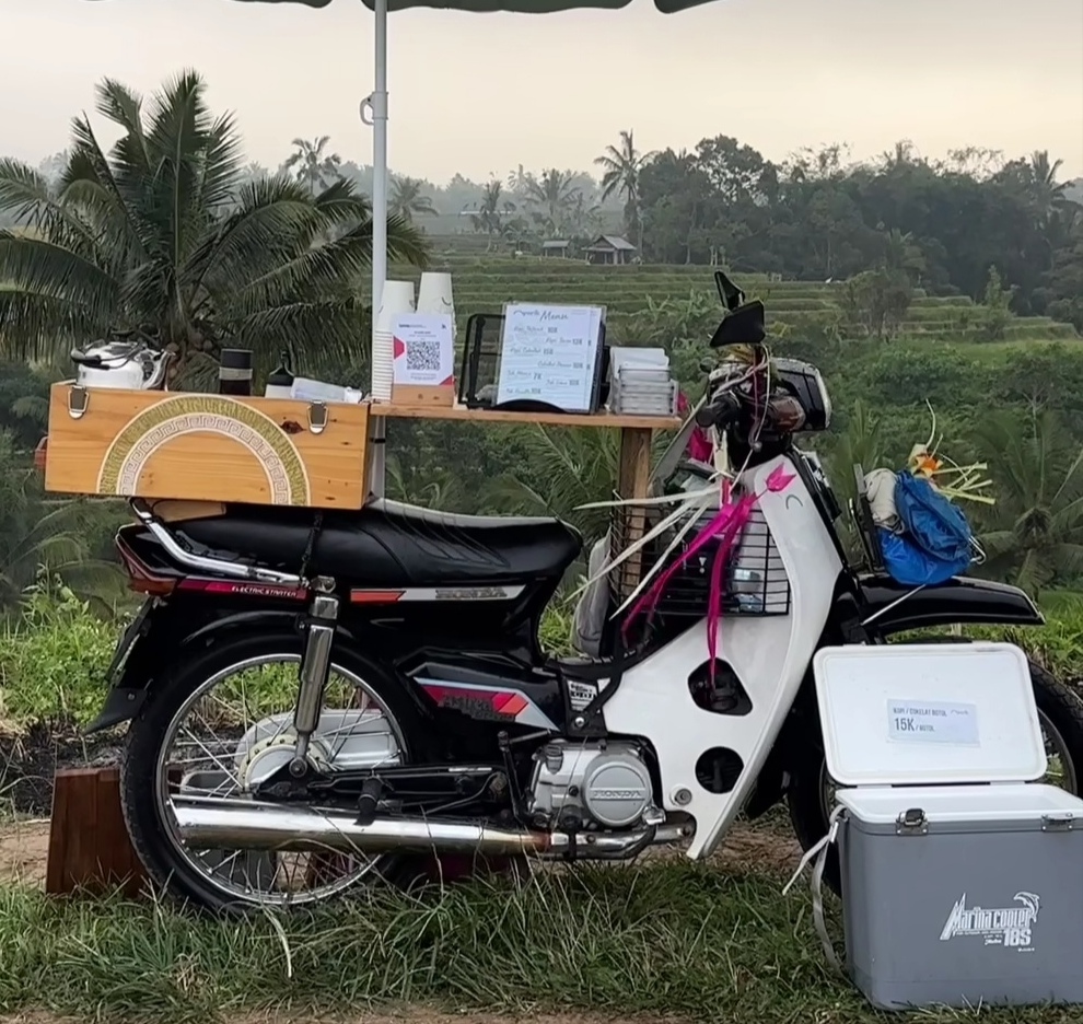 Ngopi viral di Tabanan, harganya murah. Ada banyak snacknya juga, ada godoh/pisang goreng, pisang rebus, jagung rebus, laklak, ada nasi Jinggo jg. Hati² yg bawa motor kesini, jalanannya curam turunan dan tanjakan.
